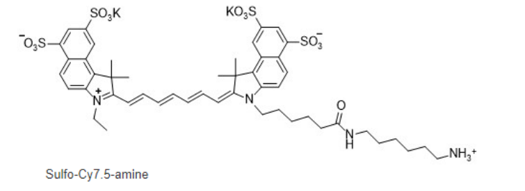 sulfo-Cy7.5 amine | sulfo-Cyanine7.5 amine | 磺化Cy7.5-氨基 | 水溶性CY7.5-NH2 荧光染料的溶解度以及激发与发射波长