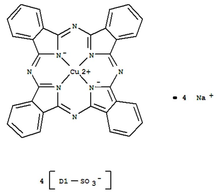 tetrasodium [29H,31H-phthalocyaninetetrasulphonato(6-)-N29,N30,N31,N32]cuprate(4-);氧化学结构式:C36H28CuN8Na4O12S4,氧大分子量:984.25