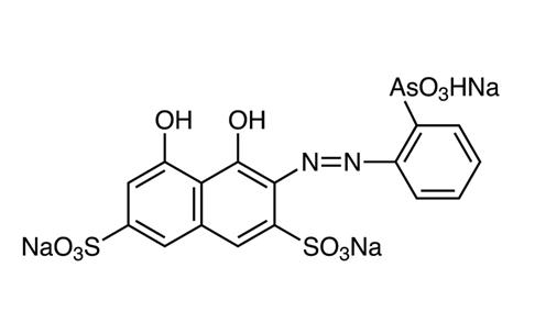 偶氮胂I三钠盐;原子式:C16H10AsN2Na3O11S2,原子量:614.27