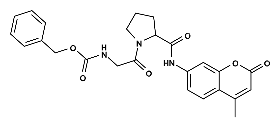 生物科技有限公司生产销售“Z-Gly-Pro-AMC|CAS68542-93-8|Z-Gly-Pro-7-氨基-4-甲基香豆素”“Z-Gly-Pro-7-Amino-4-trifluoromethylcoumarin,分子量:463.49,激发(nm):341,发射(nm):441,Z-Gly-Pro-AMC是用于测定脯氨酸后裂解酶(脯氨酰内肽酶)的荧光底物。该底物被脯氨酰内肽酶水解以产生高度荧光的7-氨基-4-甲基香豆素(AMC)。”,该产品仅用于科研,如果需要请联系我们