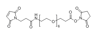 用英语翻译怎么说各称:Mal-NH-PEG6-NHS CAS No.: 1137109-21-7 用英语翻译怎么说俗名: Mal-NH-PEG6-CH2CH2COONHS 新产品饱和度: ≥95% 原子核式: C26H39N3O13 原子核量: 601.6