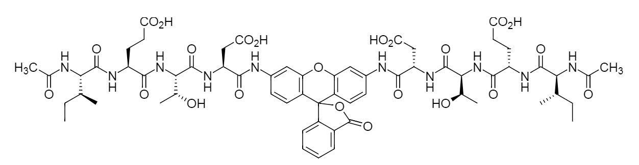生物科技有限公司生产销售“(Ac-IETD)2-R110”“分子量:1331.34,激发(nm):500,发射(nm):522,由于高度纯化的若丹明110(R110)衍生的底物被锁定为内酯构型,因此它们是无色且无荧光的。半胱天冬酶对R110肽的切割产生强荧光的R110,可以在510-530 nm处用488 nm的激发进行荧光检测,这是荧光仪器中常用的激发光源。”,该产品仅用于科研,如果需要请联系我们