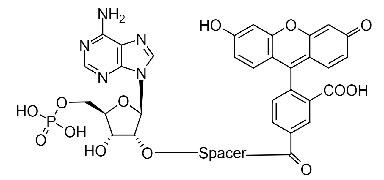 原子量:〜 800,鼓励(nm):498,发射点(nm):517,吸光度(nm):487,AMP-荧光素共轭物效准物是FAM-cAMP PDE IV底物被PDE IV电离的物质。它主要用于效准FDE-IV对FAM-cAMP PDE IV底物的电离频率。
