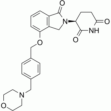 原子核式:C25H27N3O5,原子核量:449.49,饱和度: > 98%,溶化性: (R.T.: 25℃): DMSO,Iberdomide (CC-220) 是 cereblon (CRBN) 控制剂,IC50为60 nM。