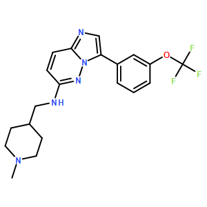 大化学结构式:C20H22N5OF3, 大原子量:405.41678, 析出性: (R.T.: 25℃): DMSO, SGI-1776 free base is a novel ATP competitive inhibitor of Pim1 with IC50 of 7 nM in a cell-free assay, 50- and 10-fold selective versus Pim2 and Pim3, also potent to Flt3 and haspin. Phase 1.