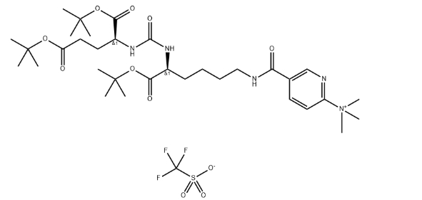 英文名称: 2-Pyridinaminium, 5-[(7S,11S)-7,11-bis[(1,1-dimethylethoxy)carbonyl]-16,16-dimethyl-1,9,14-trioxo-15-oxa-2,8,10-triazaheptadec-1-yl]-N,N,N-trimethyl-, 1,1,1-trifluoromethanesulfonate (1:1)