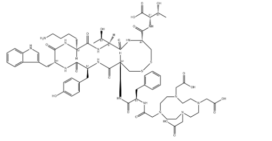 英文名称: L-Threonine, N-[2-[4,7,10-tris(carboxymethyl)-1,4,7,10-tetraazacyclododec-1-yl]acetyl]-D-phenylalanyl-L-cysteinyl-L-tyrosyl-D-tryptophyl-L-lysyl-L-threonyl-L-cysteinyl-, cyclic (2→7)-disulfide