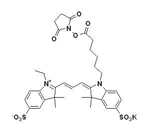 生物科技有限公司生产销售“Cy3-NHS酯,cas:146368-16-3,Cy3-NHS ester”“Cy3-NHS酯,cas:146368-16-3,Cy3-NHS ester,分子量:765.93 外观:深红色固体纯度:97%”,该产品仅用于科研,如果需要请联系我们