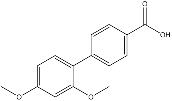 生物科技有限公司生产销售“cas:108474-22-2|2',4'-Dimethoxy-[1,1'-biphenyl]-4-carboxylic acid”“2',4'-Dimethoxy-[1,1'-biphenyl]-4-carboxylic acid,分子量: 258.269,分子式: C15H14O4”,该产品仅用于科研,如果需要请联系我们